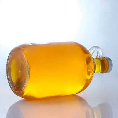 Customized Logo Round Shape Liquor Glass Bottle with Handle and Screw Cap